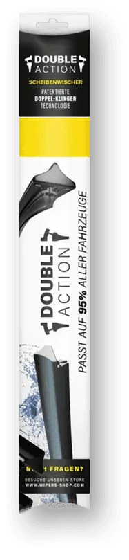 Er heeft in de afgelopen jaren maar weinig ontwikkeling plaatsgevonden in het ontwerp en design van ruitenwissers. Daarom zien wij ook de ontwikkeling van de DoubleAction Ruitenwissers als een (kleine) revolutie in de ruitenwissertechnologie. Het gepatenteerde systeem zorgt voor een snellere reiniging en dus beter zicht. Niet alleen bij regenachtig weer, ook wanneer u tijdens het rijden de voorruit wilt reinigen met de ruitensproeiervloeistof en de ruitenwissers. Bij de huidige gangbare ruitenwissers wordt vuil en ruitensproeiervloeistof meestal op de voorruit uitgesmeerd en blijven er strepen of veegsporen achter. Hierdoor slijten de wisserbladen sterk. De DoubleAction Ruitenwissers zijn daarentegen duurzamer omdat ze ontworpen zijn voor intensief gebruik. Ook het ontwerp van de wisserbladen is indrukwekkend: eigentijds en aerodynamisch !